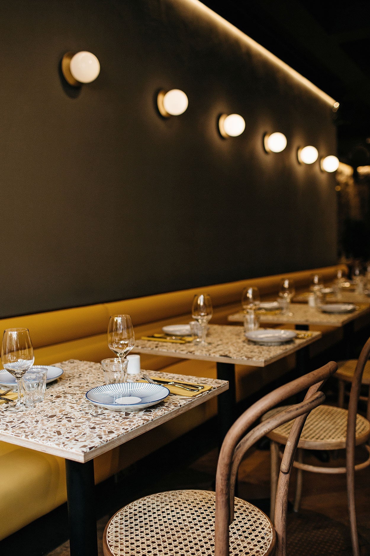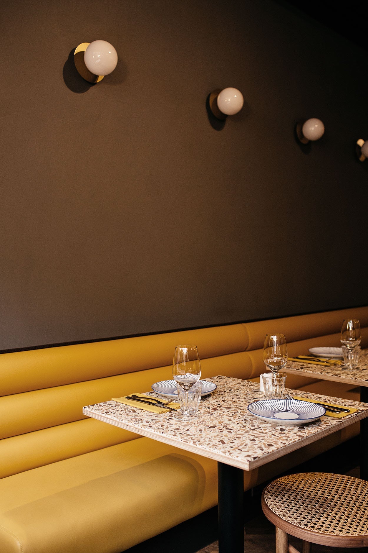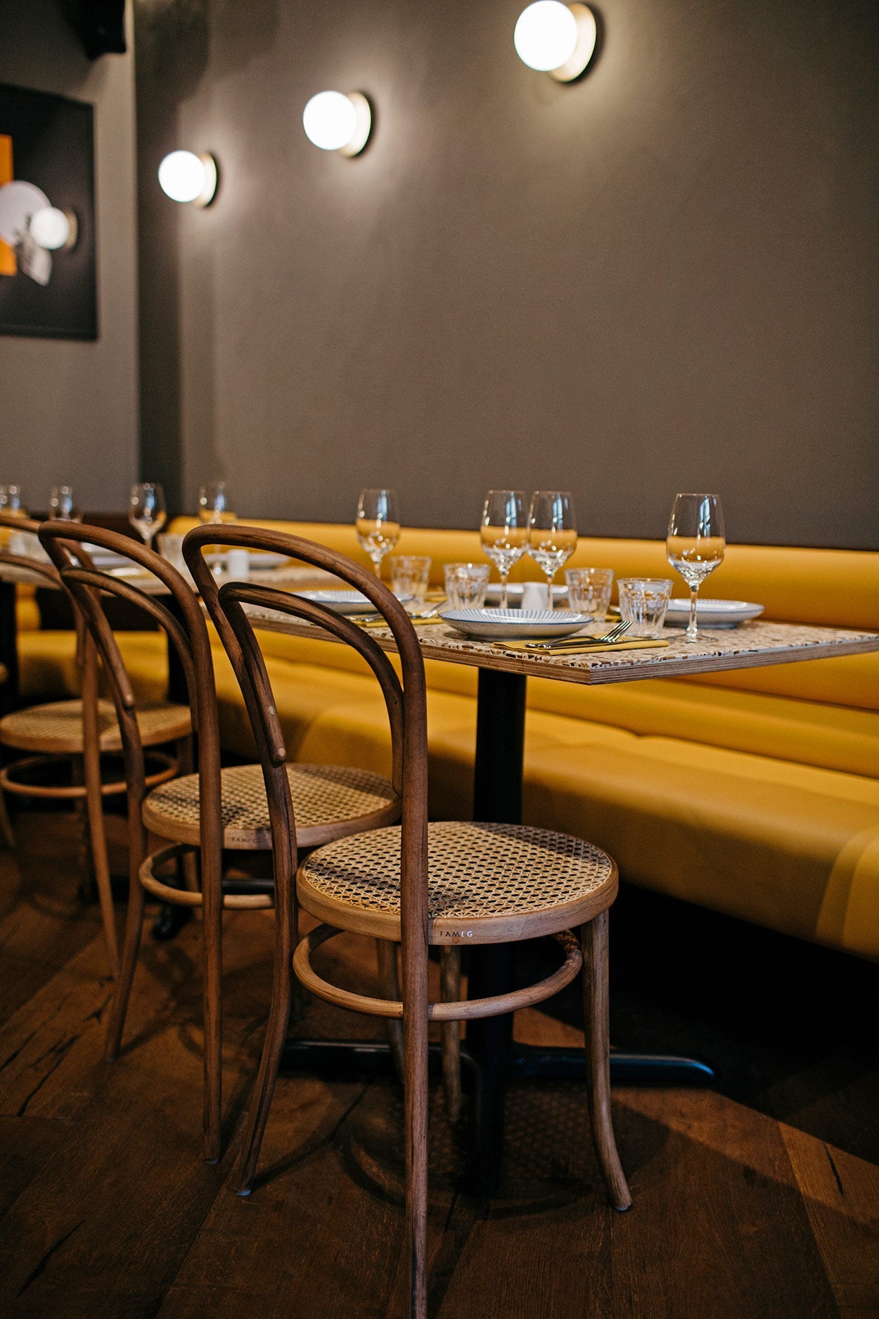 In Edinburgh, they redecorated the 83 Hanover Street restaurant to give it a modern look with esteem for the architecture of the building. Liila 1 Medium - Opal White/Nordic Gold brings a warm and unique feel to the restaurant.