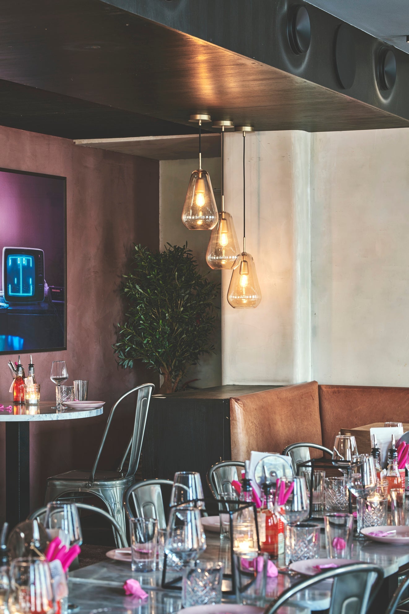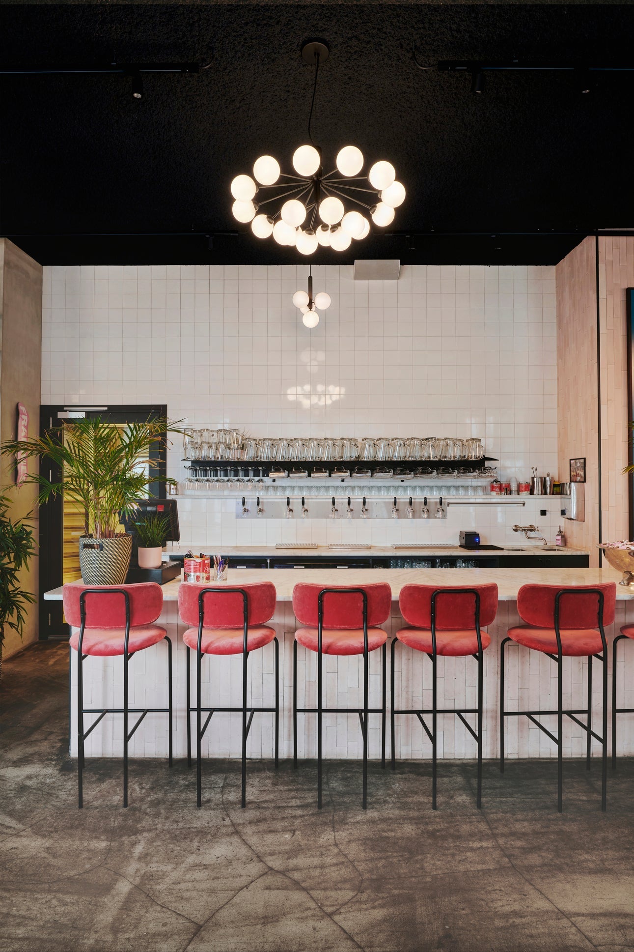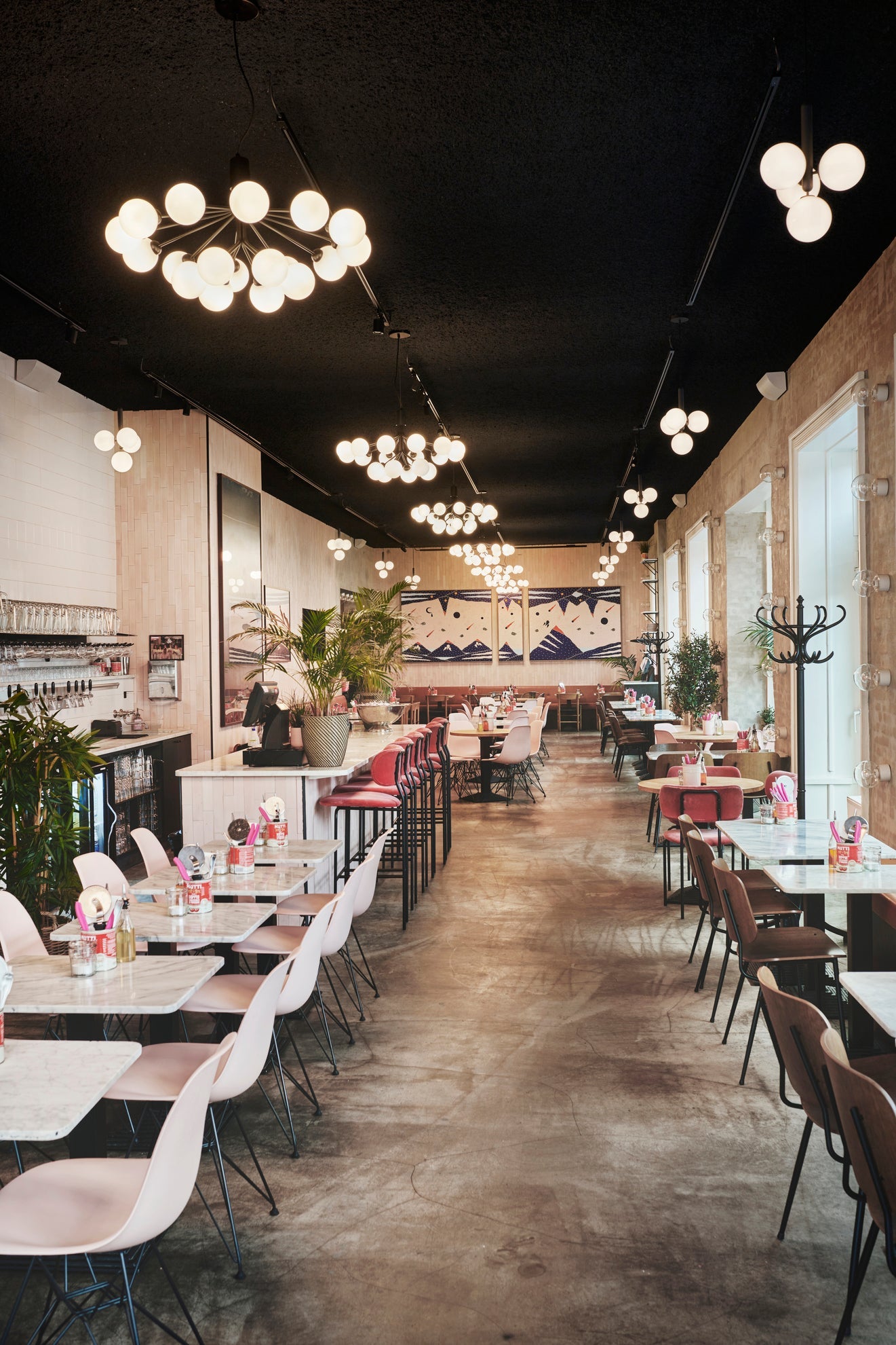 Frankies Pizza focuses on the great classics of Italian cuisine, seasoned with regional specialties. The restaurants focus on creating a festive atmosphere, and the raw interior offers pink balloons, neon signs, palms trees and light chains in the ceiling.