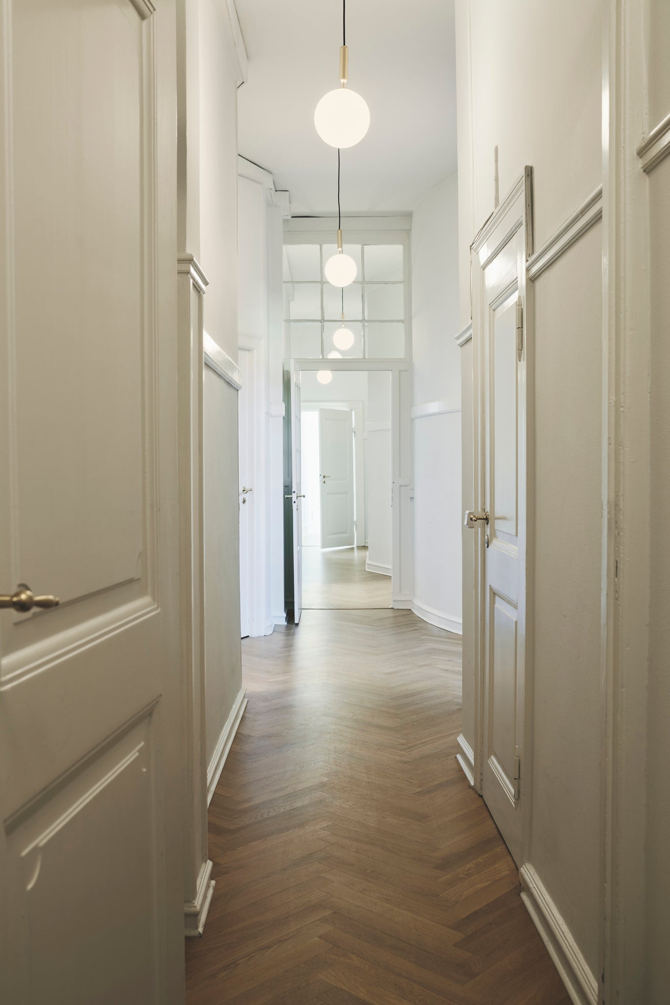 The lights with Optic Clear glass create beautiful light reflections that spread a warm and comfortable feel in Le Managements lounge areas, while our lights with Opal White glass spread even quality light that lights up the work desks where good light is needed.