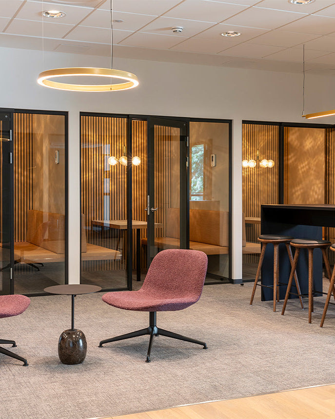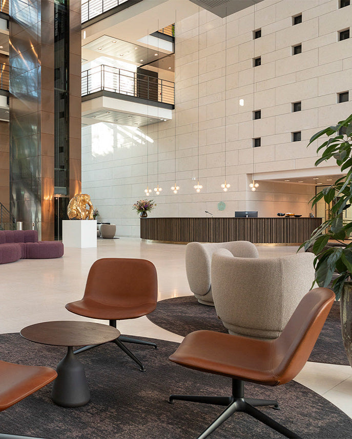 Nuura's lighting is placed in various common areas, contributing to a sensuous and warm atmosphere in the new modern domicile. Miira 4 is located in the reception