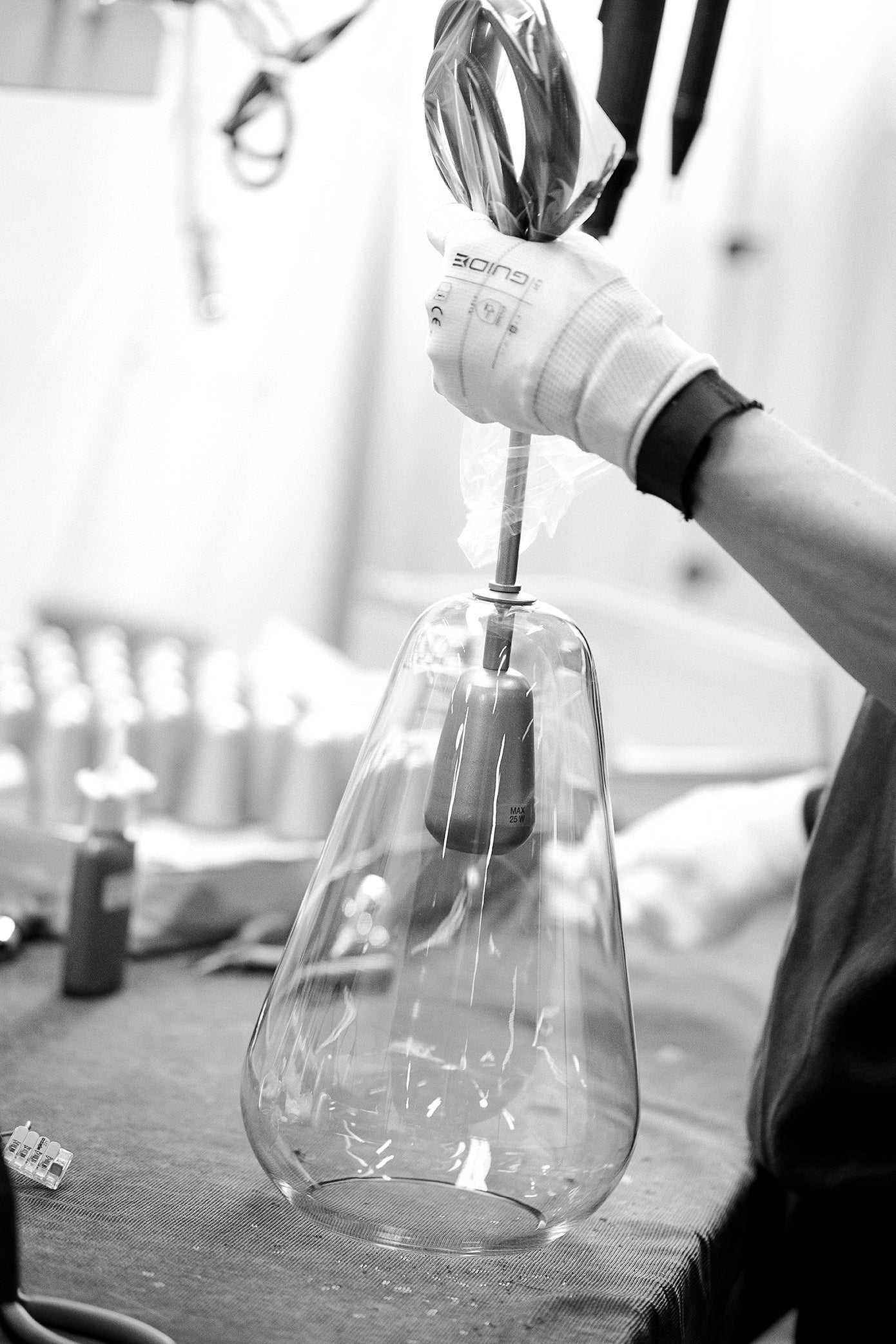 We use hand-blown glass, where each glass is uniquely crafted by artisans, adding a distinctive and unique touch to every lamp.