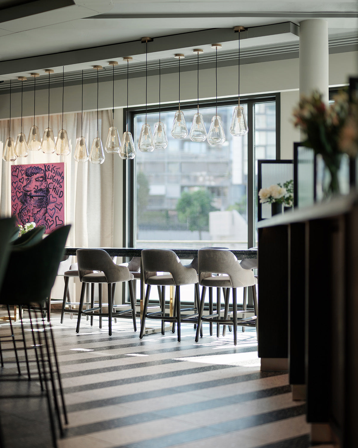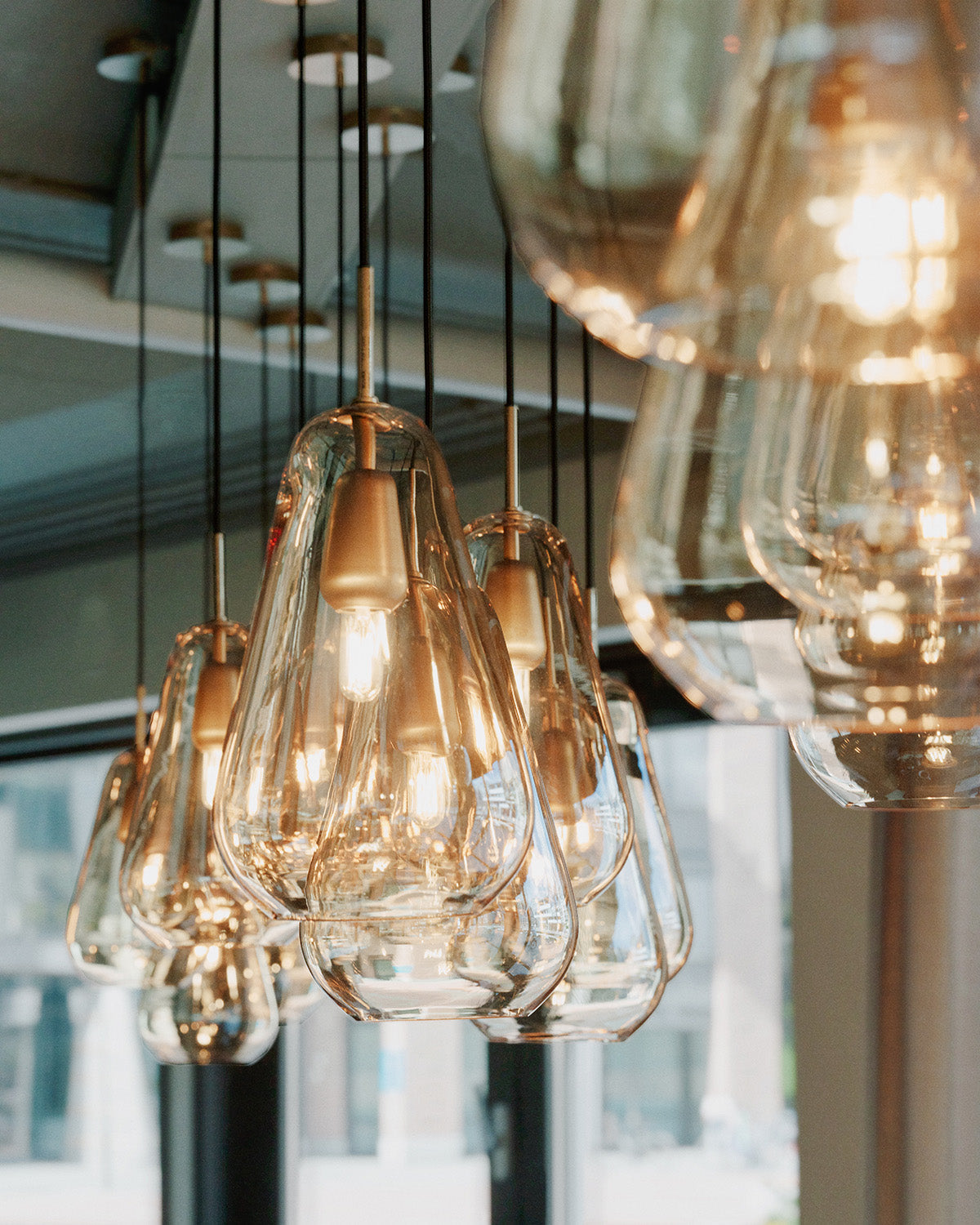 Anoli 1 Medium is a single pendant inspired by raindrops on an autumn day. The droplet shade is made of mouth-blown glass, and handpainted with a special lustre to give the glass its golden colour. The pendant features golden metal details and a black fabric covered cable. Anoli 1 pendant provides a warm and pleasant light, and its simple design language brings calm and balance to the interior.