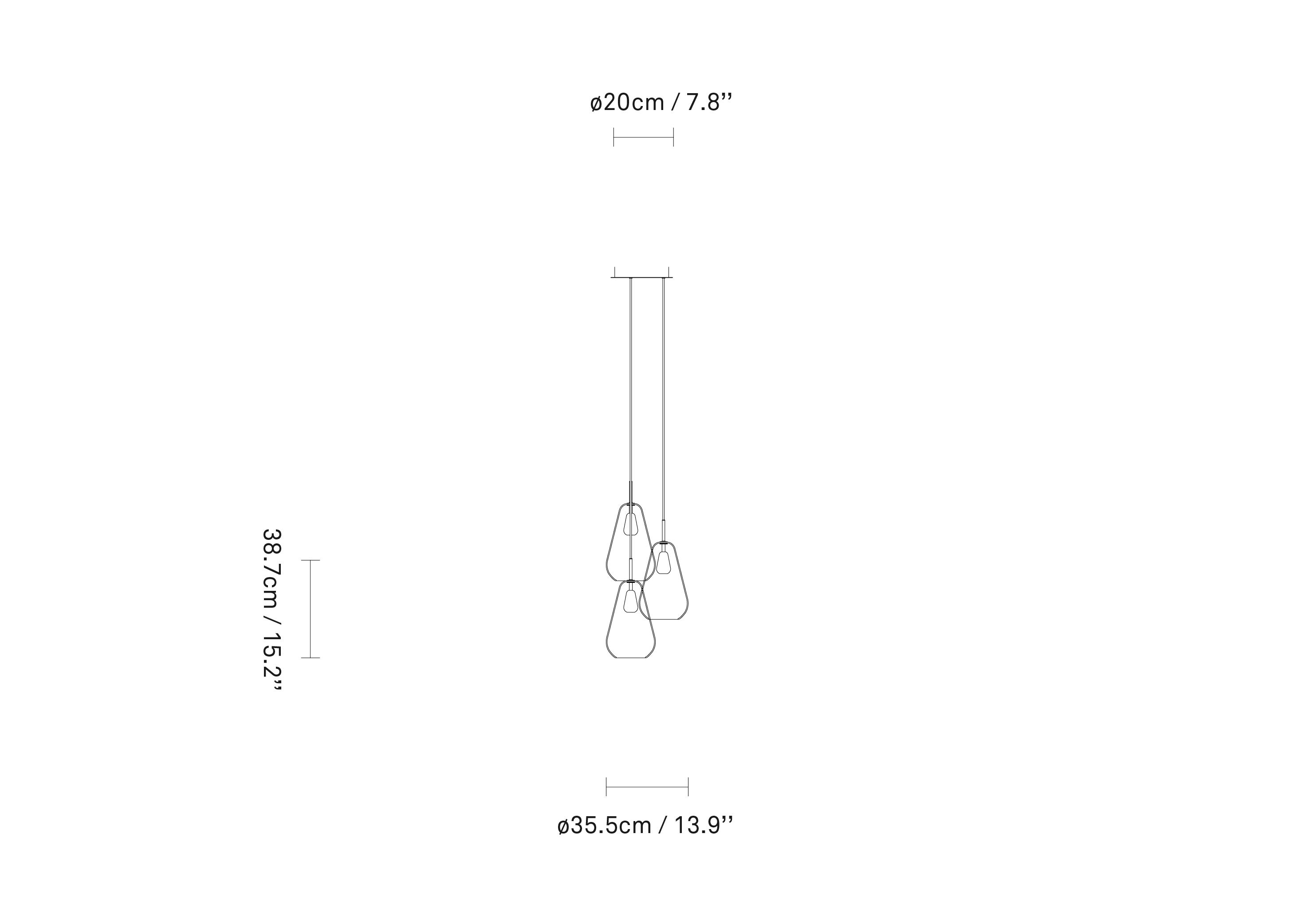 Anoli 3 consists of three hand-blown glass pendants in opal white glass, gathered in a cluster of light. The drop-shaped shades reflect the soft lines of nature, and the white glass suggests a snowy landscape. The cluster pendant is made with details in gold, where the warm, metallic finish adds a subtle glow and ties the design together. The combination of the two materials makes Anoli 3 both timeless and modern.