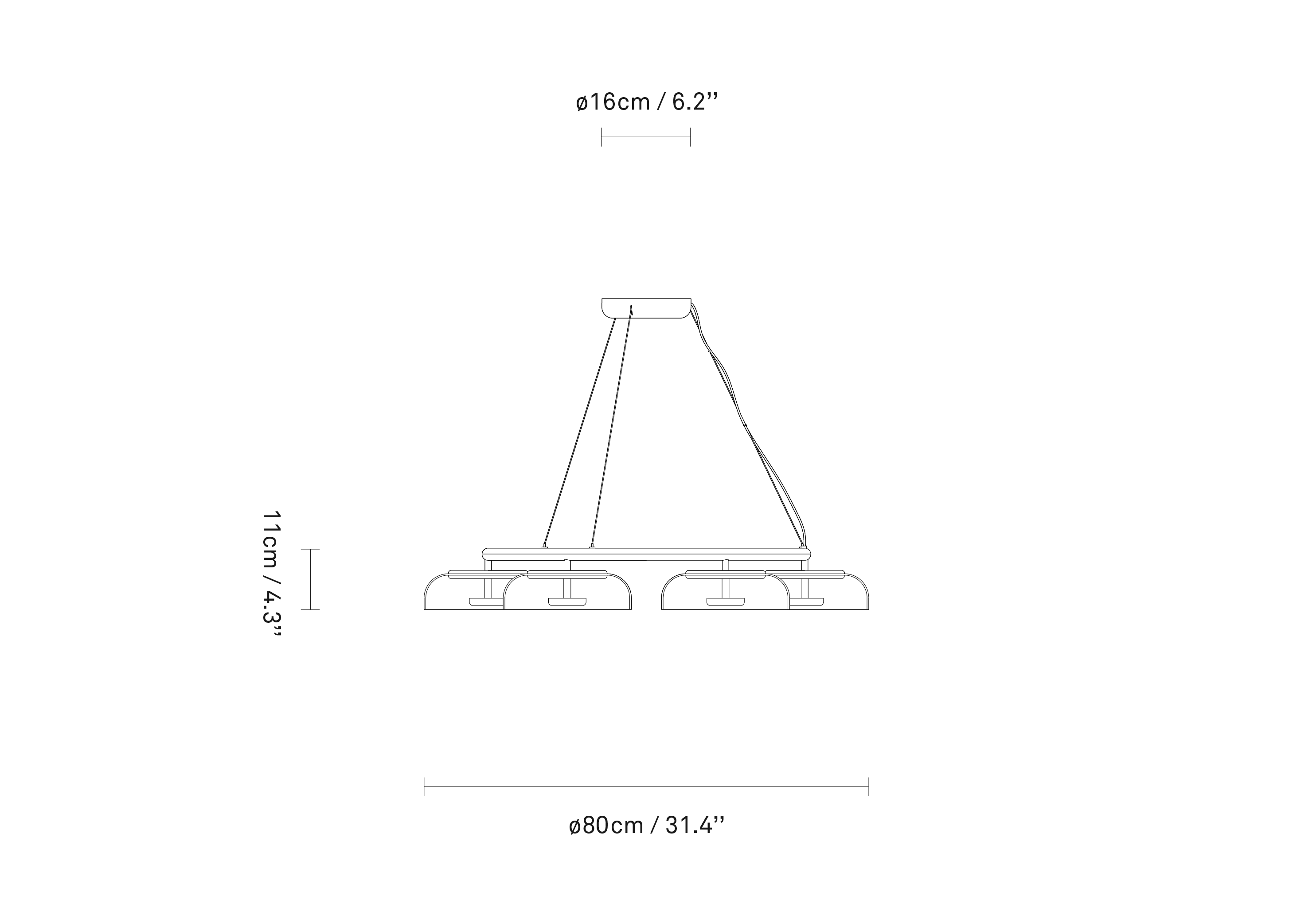 Blossi 6 is a smaller version of the Blossi chandelier, designed with the same LED technology as the rest of the collection. The specially developed LED board is placed in a golden metal disc, directing light upward into the six lampshades, where it is softly reflected in the glass. The LED board is replaceable and complies with the latest EU flicker regulations.