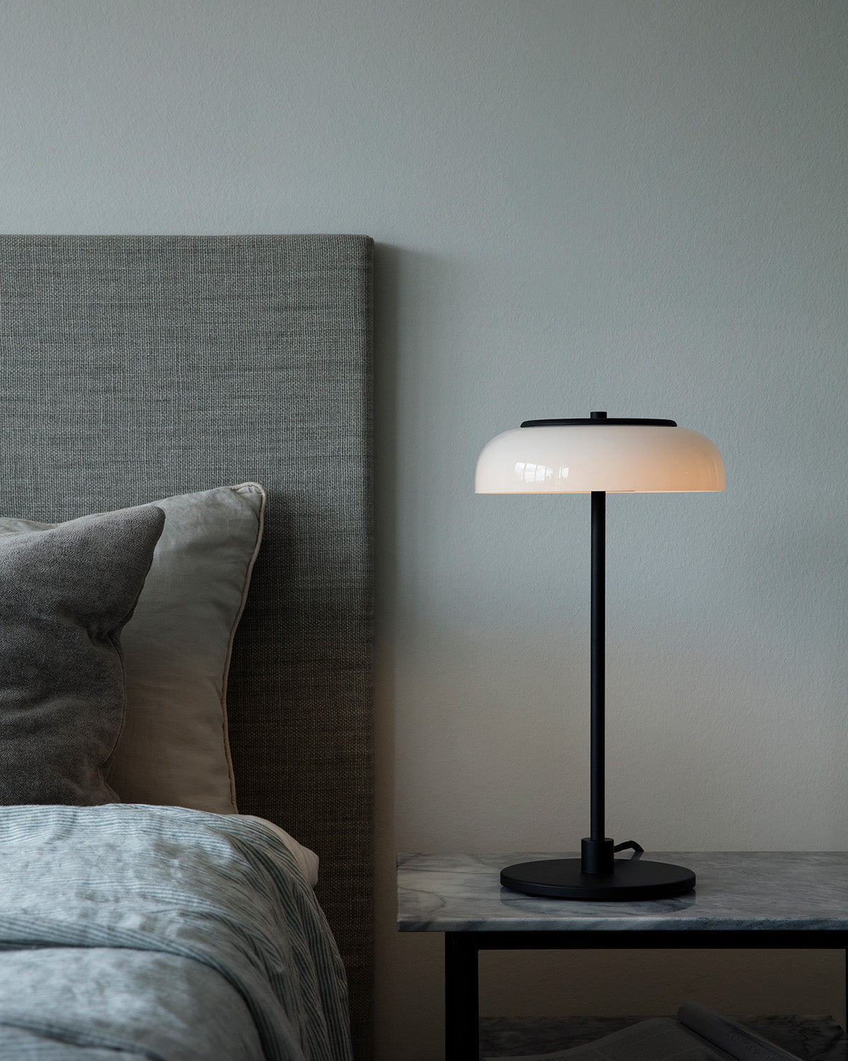Blossi Table is a table lamp with a sleek and simple design. The black surface is coated with a unique lacquer that is particularly resistant to dirt. The Blossi collection is now produced in a low-voltage version with an easily replaceable LED board, providing flicker-free light and meeting the latest EU regulations. Comes with a dimmable cable and both EU and UK plugs.