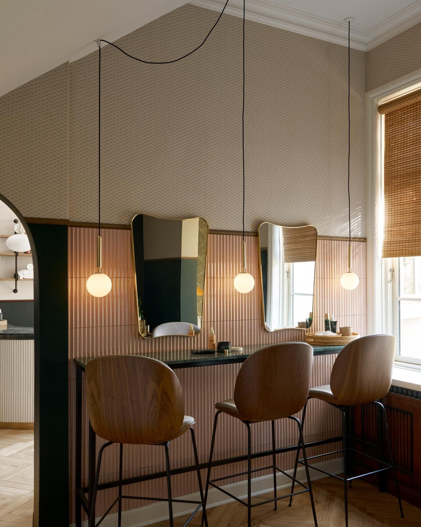 Miira 1 is a versatile pendant featuring a brass construction with a transparent glass shade with embossed pattern. The brass-coloured metal adds a soft, reflective touch while the optic clear glass creates a playful light. Miira 1 pendant can be used as a single light source, in pairs or rows, and its minimalist design adds a modern touch while providing ample illumination.