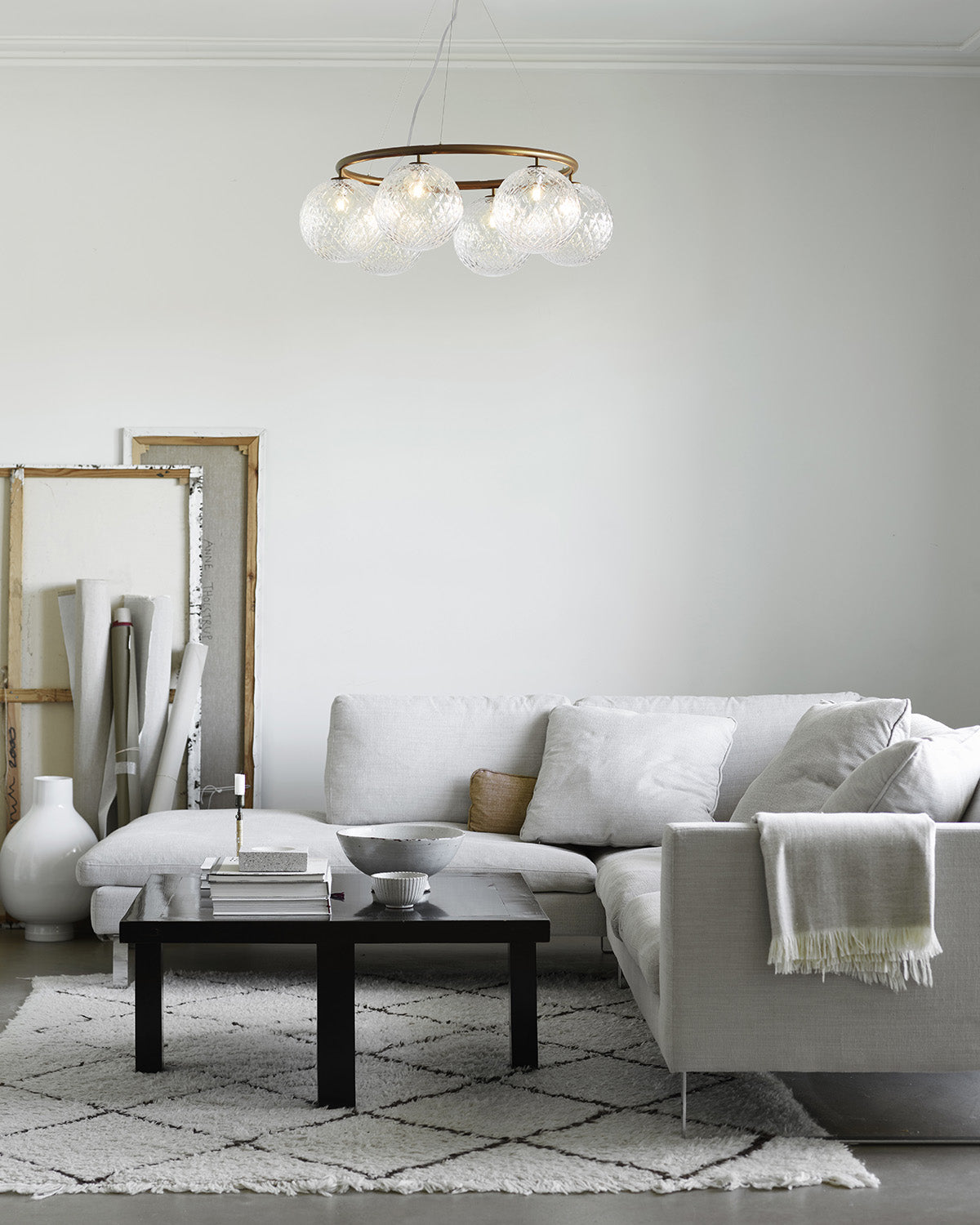 Miira 6 Circular has a plump and balanced expression, and the clean design is complemented by an industrial look from the dark bronze metal. With a special wire system between the ceiling plate and the metal ring, it is possible to set the Miira 6 Circular to the ideal height.