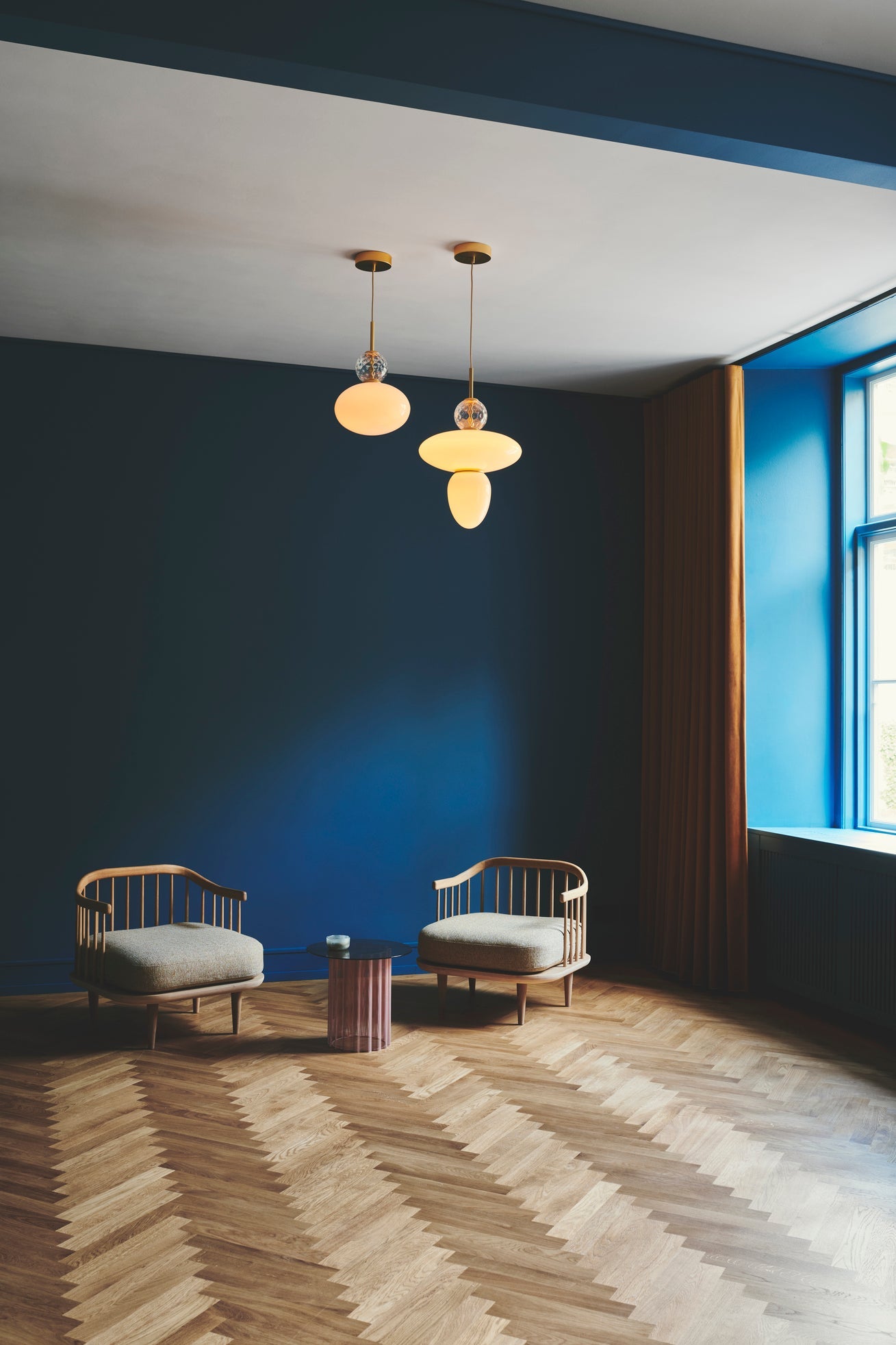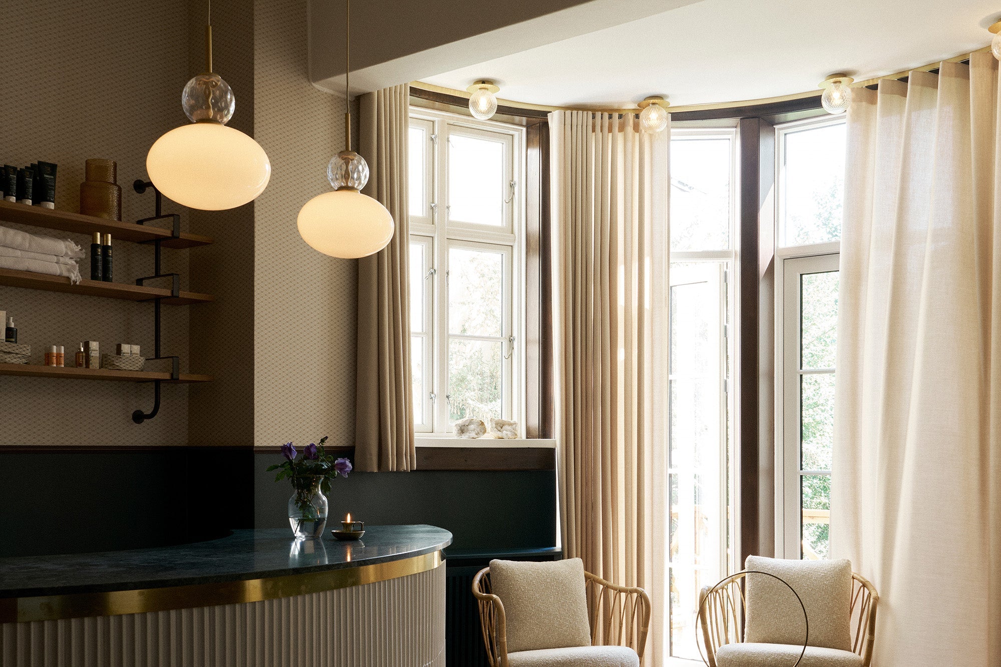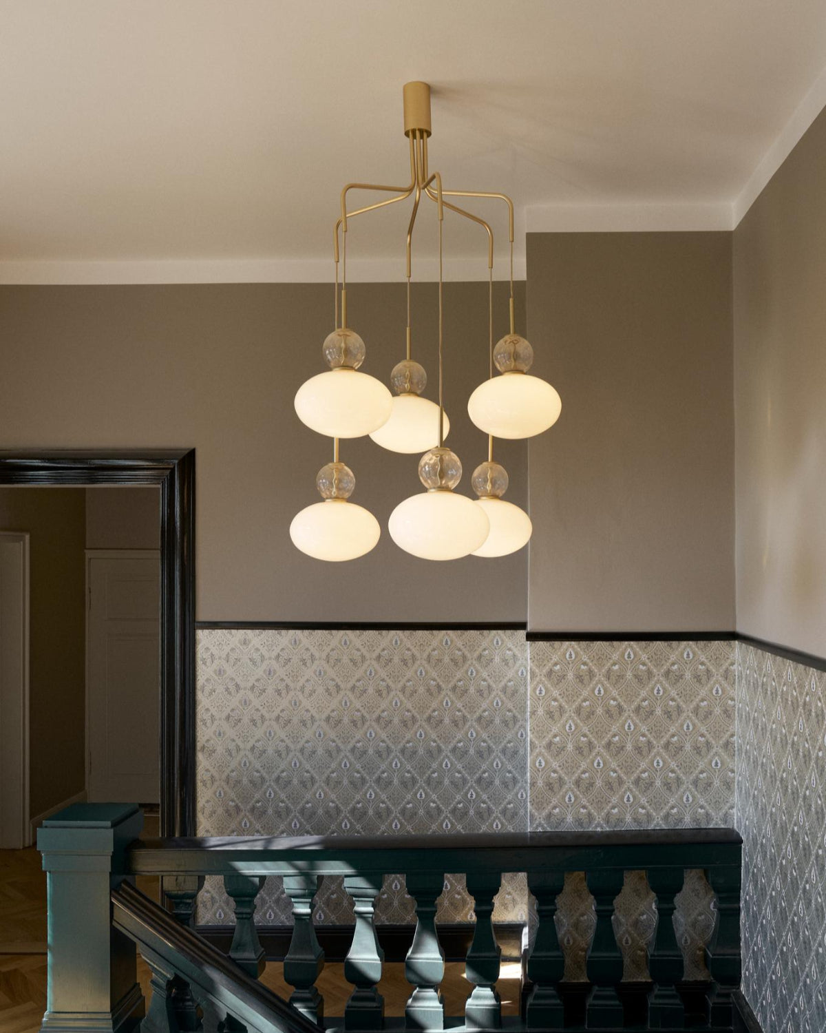 The Rizzatto 32 pendant combines a sculptural design with functional brilliance. The pendant features an organic-shaped opal glass shade that emits a soft, even light, and is paired with details in satin brass finish and optic clear glass, creating a warm and inviting ambiance. With its minimalist aesthetic and high-quality craftsmanship, Rizzatto 32 complements both modern and classic interiors.