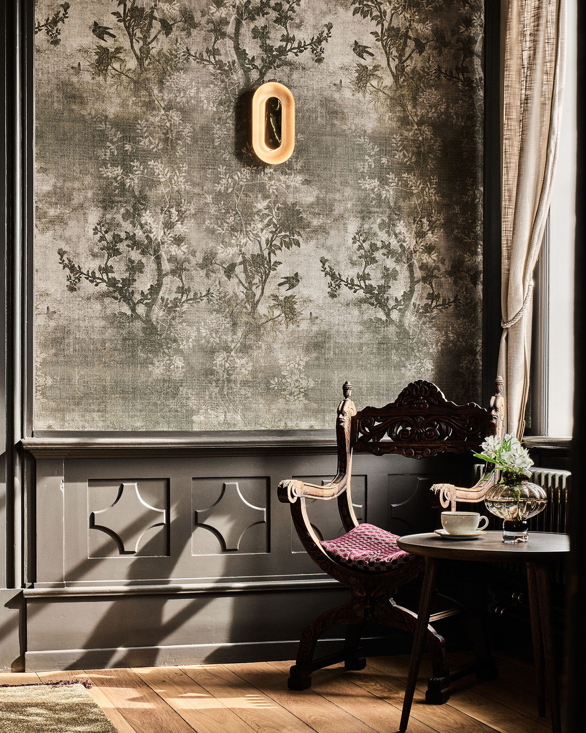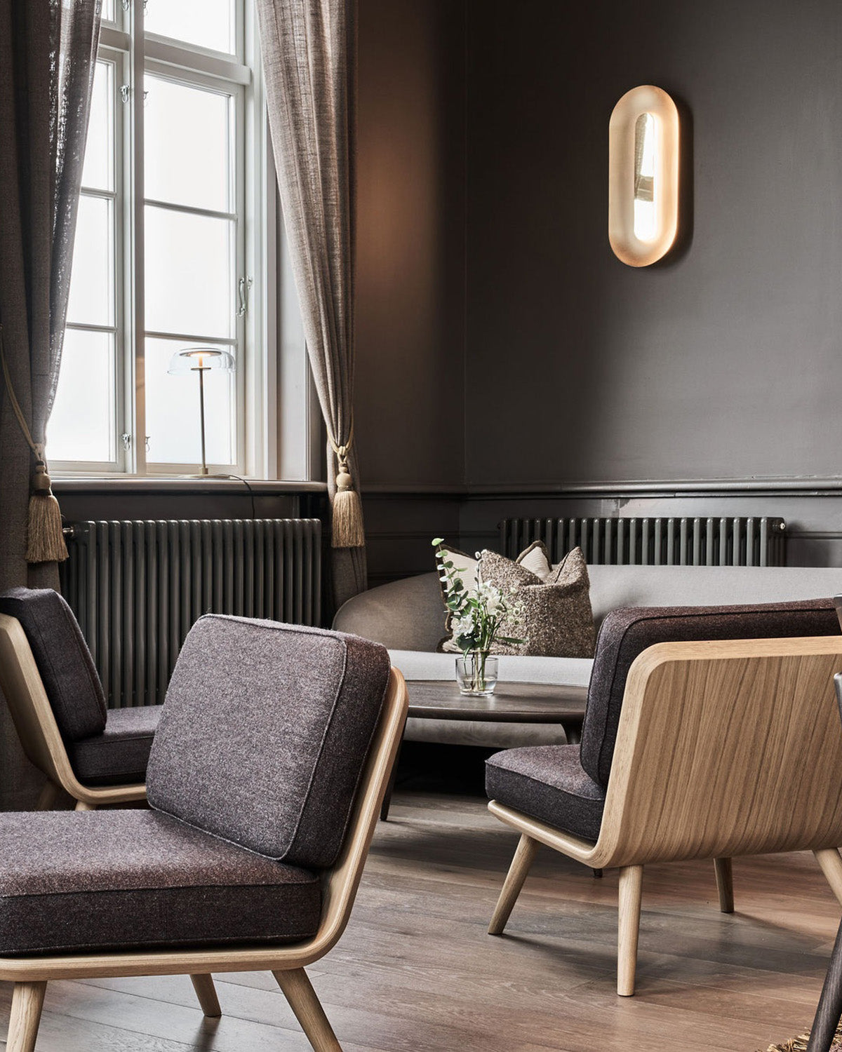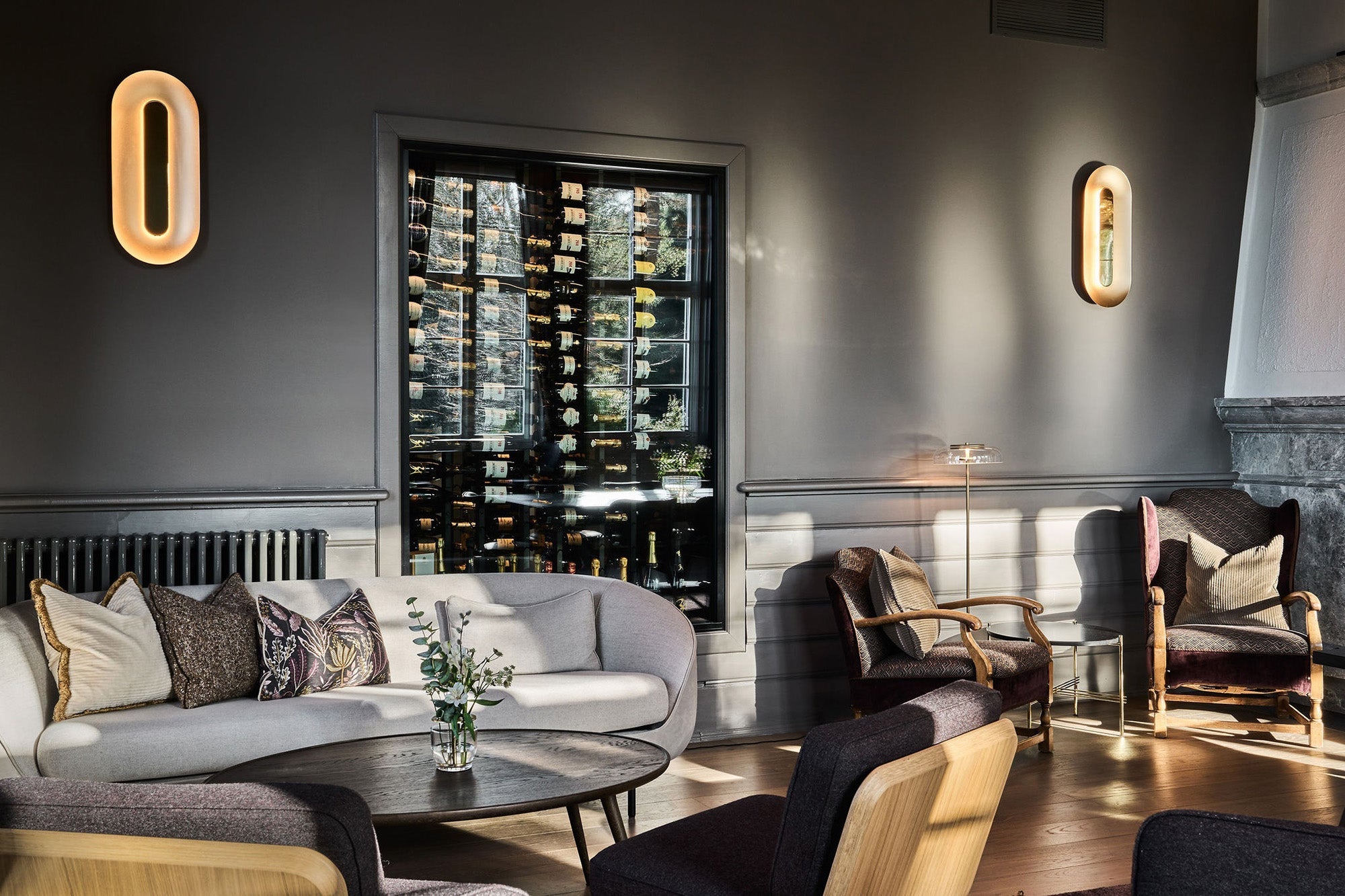 Decorative wall lamp with a soft expression and a comfortable, indirect light. The Sasi Large wall lamp is constructed with a large round metal frame in satin brass finish and a lampshade in polished brass finish. An integrated LED module is placed behind the polished shade and reflects the light in the large metal frame.